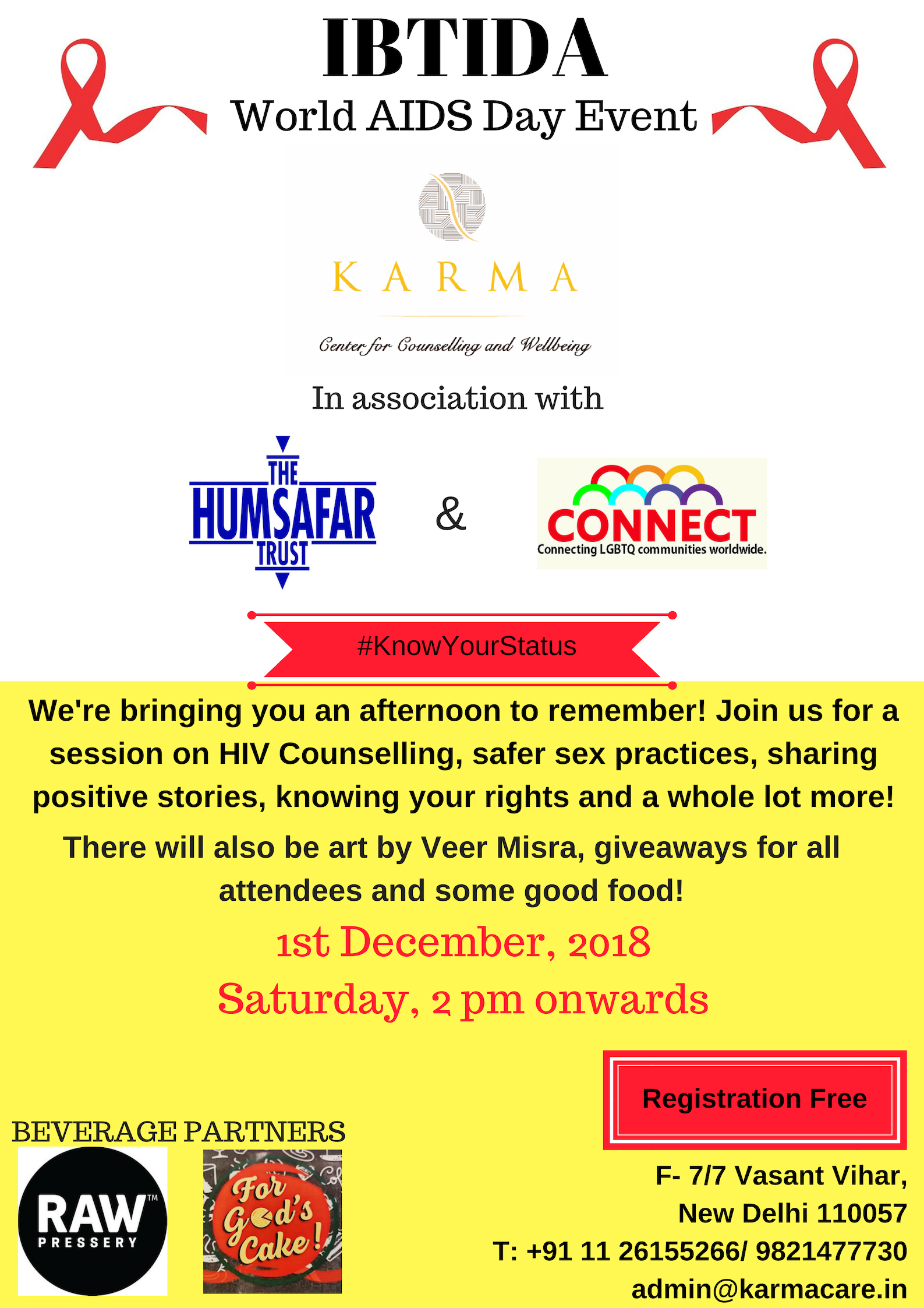 On the occasion of World AIDS Day, Karma Center for Counselling & Wellbeing in association with The Humsafar Trust is holding an event – Ibtida, to create more awareness and de-stigmatize AIDS as an illness.