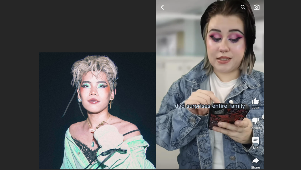 Grateful to the algorithm that has managed to recommend queer makeup artists/content creators like Frederic Chen and Stanzi Potenza to me, who are not only fellow non-binary theylies like yours truly, but also quite creative with their fashion and makeup! Stanzi, who is technically a comedy content-creator, has always shown up with elaborate and colourful makeup (think bold eyeliner, falsies and vibrant eyeshadow). She would take on the avatar of a sexist Chad (basic cis-white man) and mock it, making for hilarious skits!